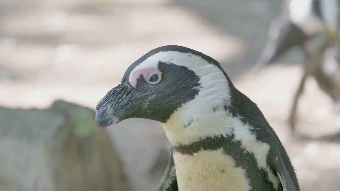 African penguins typically breed in burrows or under rocks, returning to the same nesting sites year after year. They form strong pair bonds and both parents share responsibility for incubating eggs and raising chicks. Their distinctive braying calls help them communicate with mates and offspring within crowded colonies.