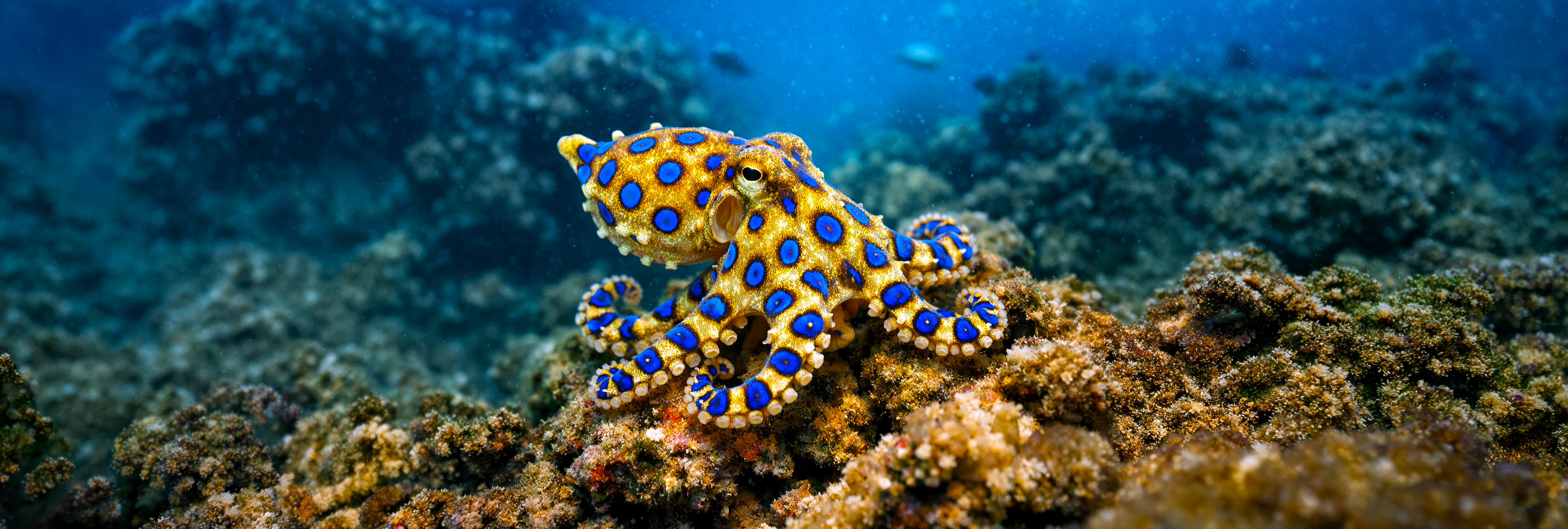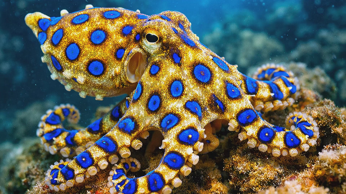 The blue ringed octopus is one of the ocean's most venomous creatures, despite its small size—typically just 5 to 8 inches across. Found in tide pools and coral reefs across the Indo-Pacific region, this remarkable animal carries enough venom to kill multiple adult humans, yet it is generally docile and only uses its toxin when threatened or hunting.
