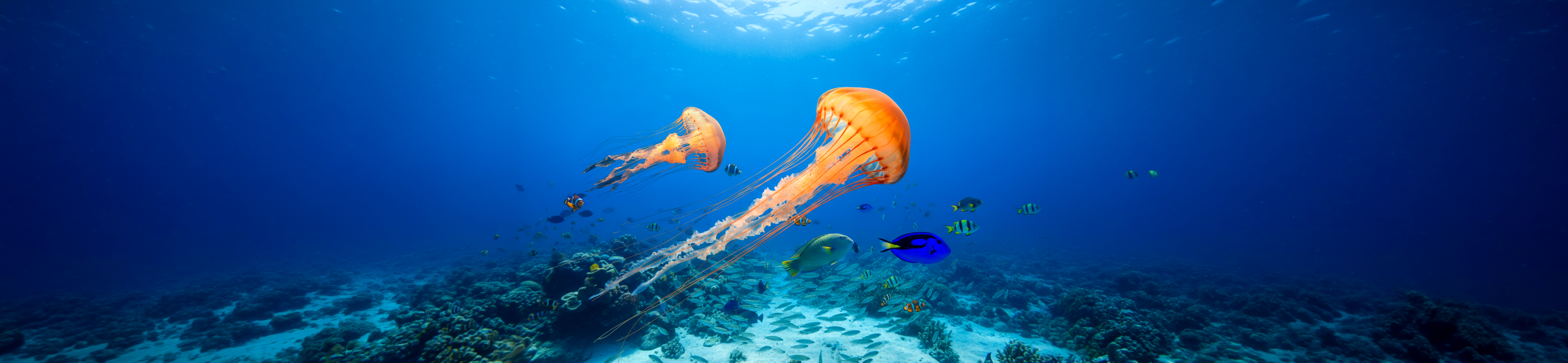 Orange blossom jellyfish are delicate creatures found in warm coastal waters, characterized by their translucent bells and trailing tentacles. These jellyfish get their name from the orange-hued markings that often appear on their bodies, creating a striking visual appearance. They are relatively small jellyfish, typically measuring just a few inches in diameter, making them less intimidating than their larger cousins. Orange blossom jellyfish are carnivorous and feed on small plankton and fish larvae using their stinging tentacles to capture prey. These jellyfish play an important role in marine ecosystems as both predators and prey for larger ocean animals. They drift with ocean currents and are often found in groups, creating beautiful displays in the water column.