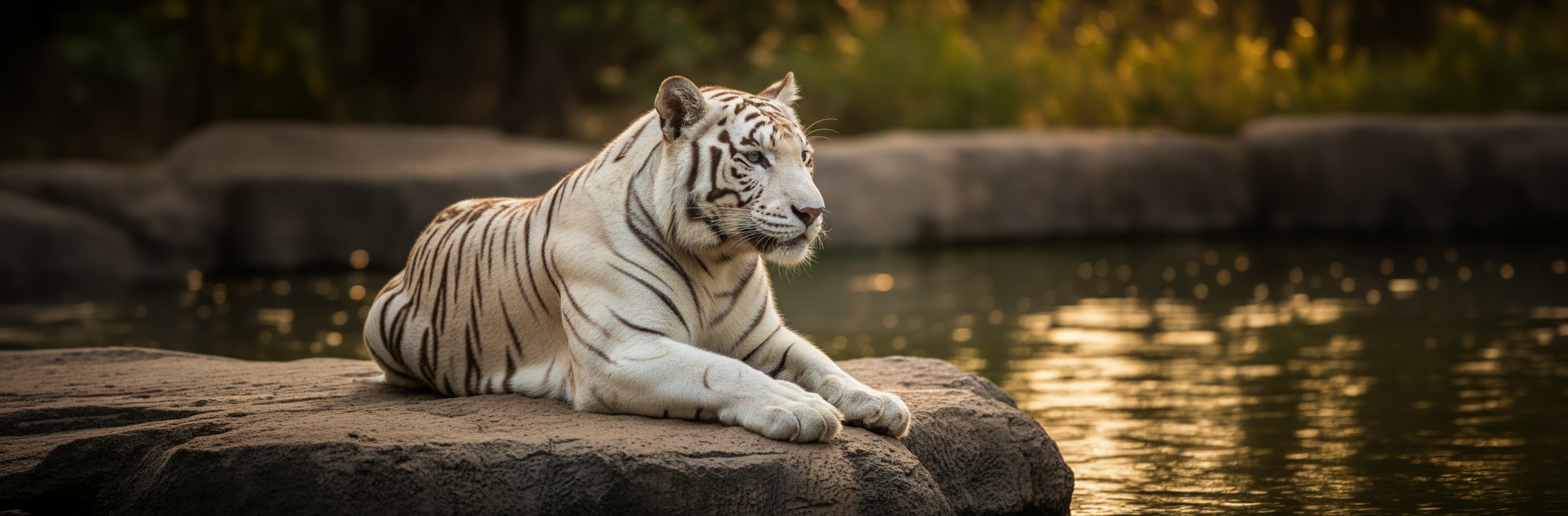 White tigers are rare Bengal tigers with a genetic mutation that produces white fur instead of the typical orange. These magnificent creatures have striking blue eyes and dark stripes, making them one of nature's most captivating big cats. White tigers are found primarily in India and are protected in wildlife sanctuaries due to their endangered status. They are powerful hunters with the same strength and agility as their orange counterparts, capable of leaping up to 30 feet in a single bound. In the wild, white tigers are solitary and territorial animals that hunt at dawn and dusk. Their white coloring, while beautiful, actually makes hunting more difficult in their natural habitat, which is one reason they are so rare in the wild. Today, white tigers are primarily seen in zoos and wildlife facilities around the world, where conservation efforts work to protect this extraordinary species for future generations.
