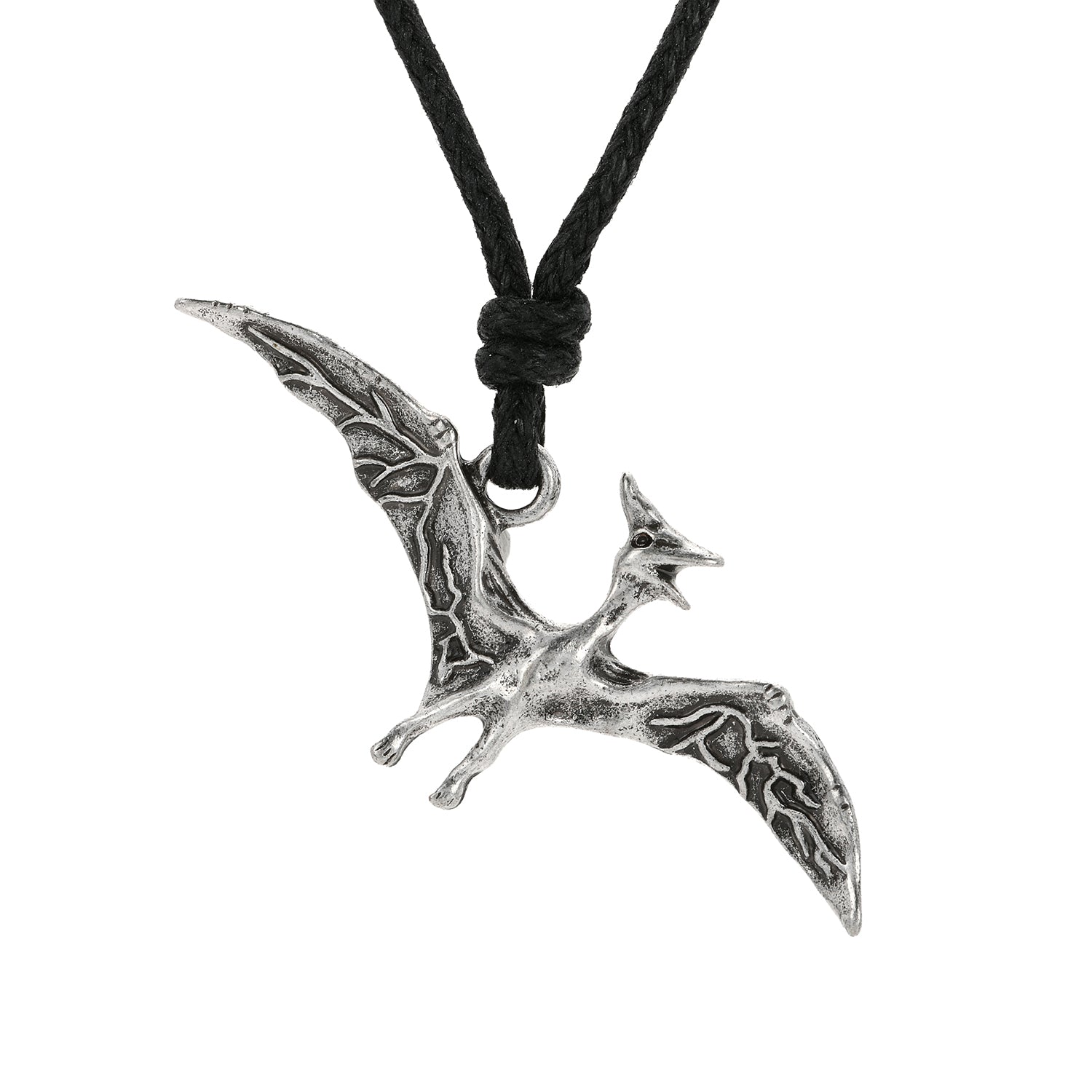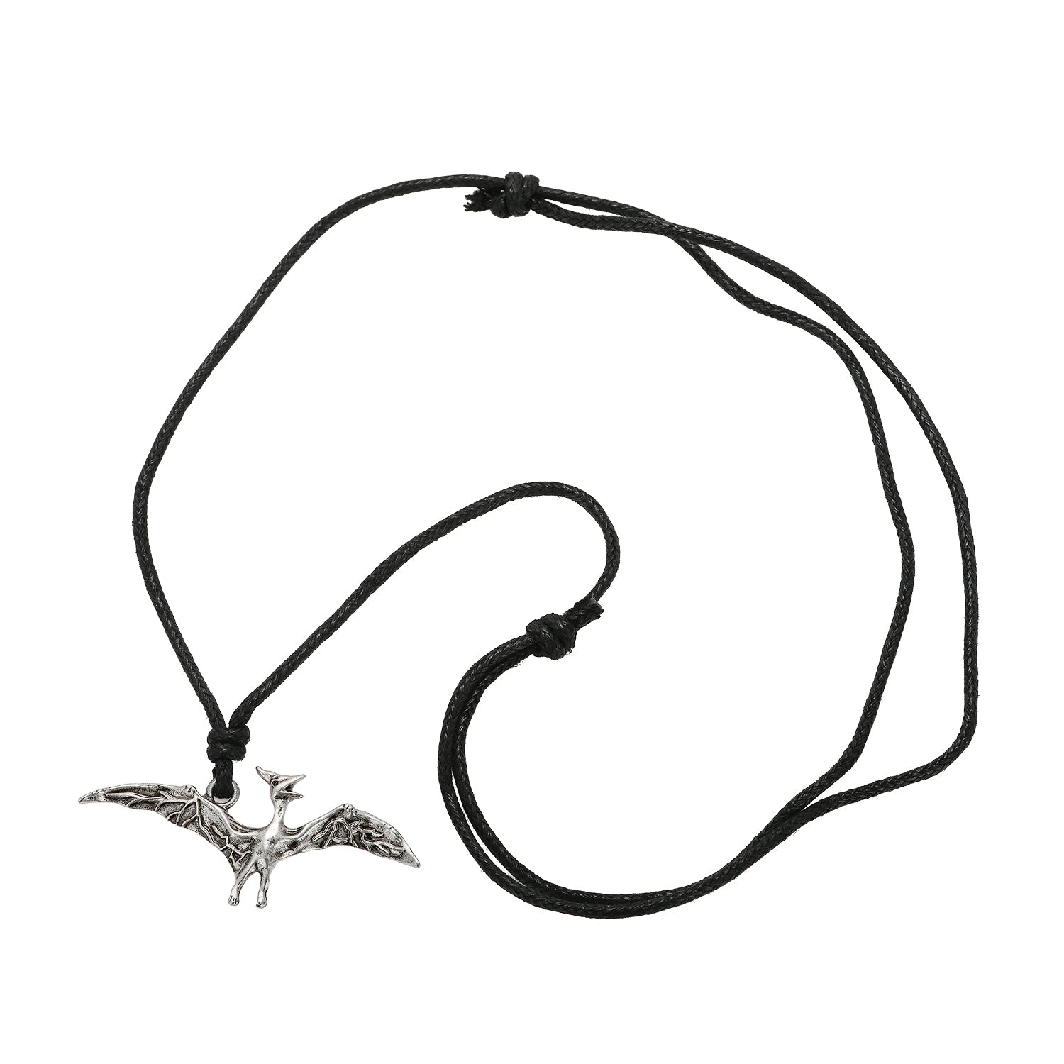 BLACK SLIDER CORD NECKLACE WITH PTERODACTYL BIRD - CARDED