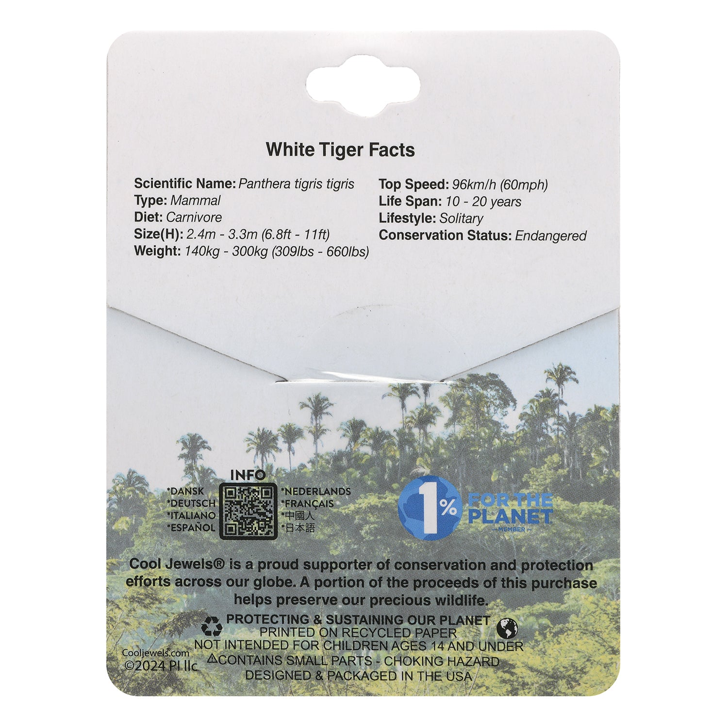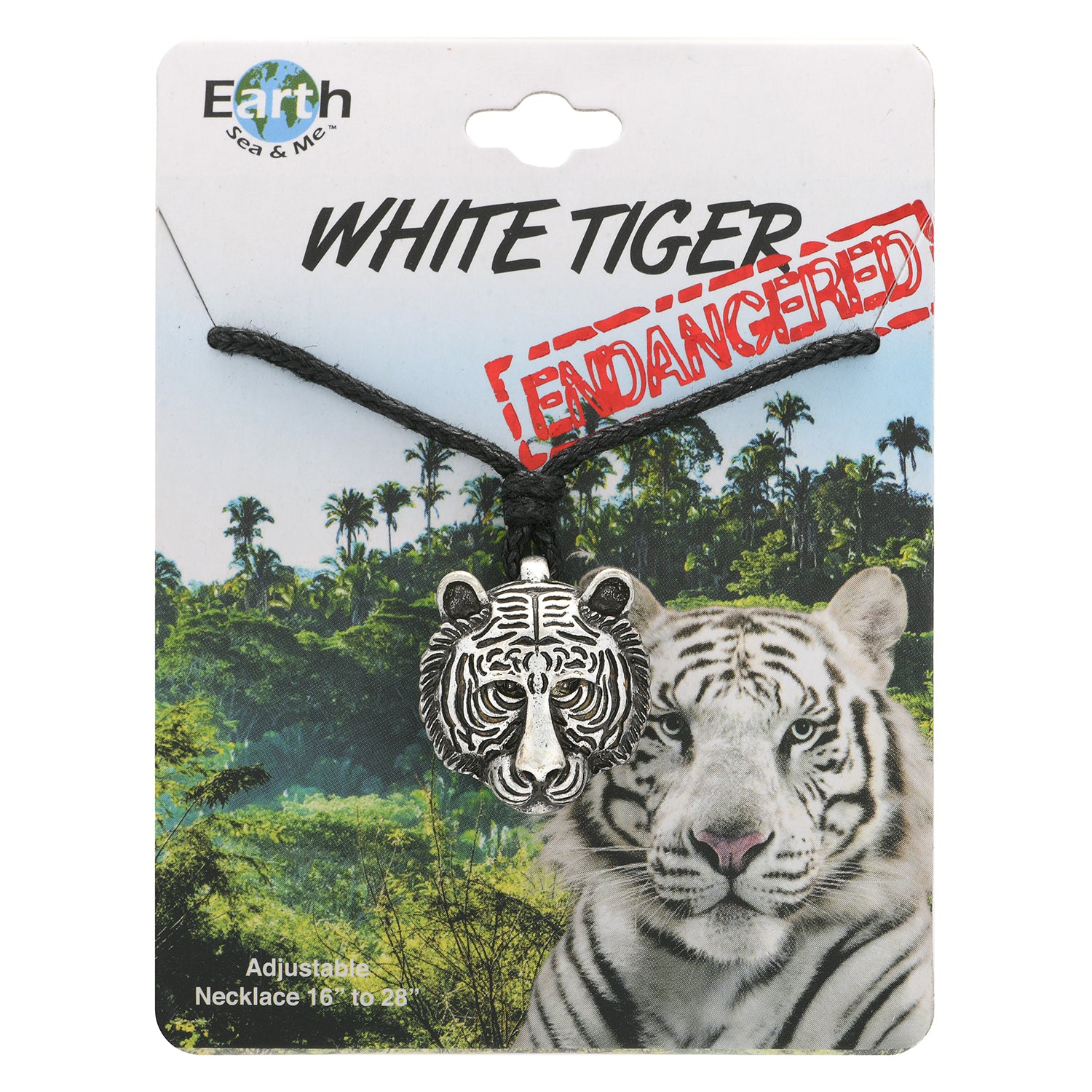 THREATENED CREATURE "WHITE TIGER" SLIDER CORD NECKLACE - CARDED