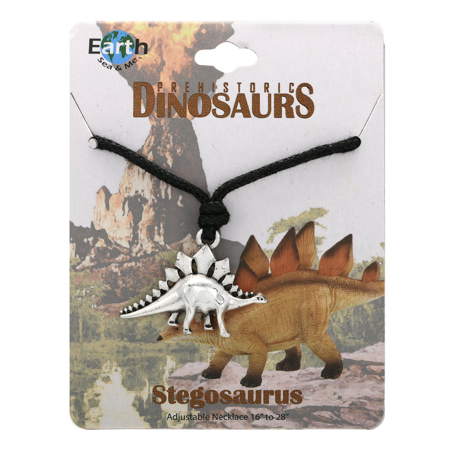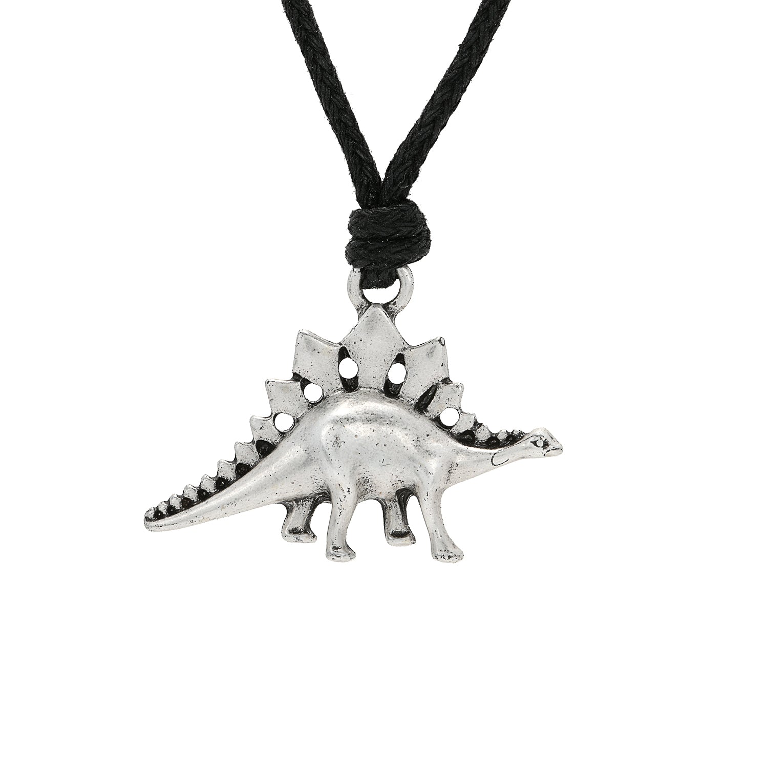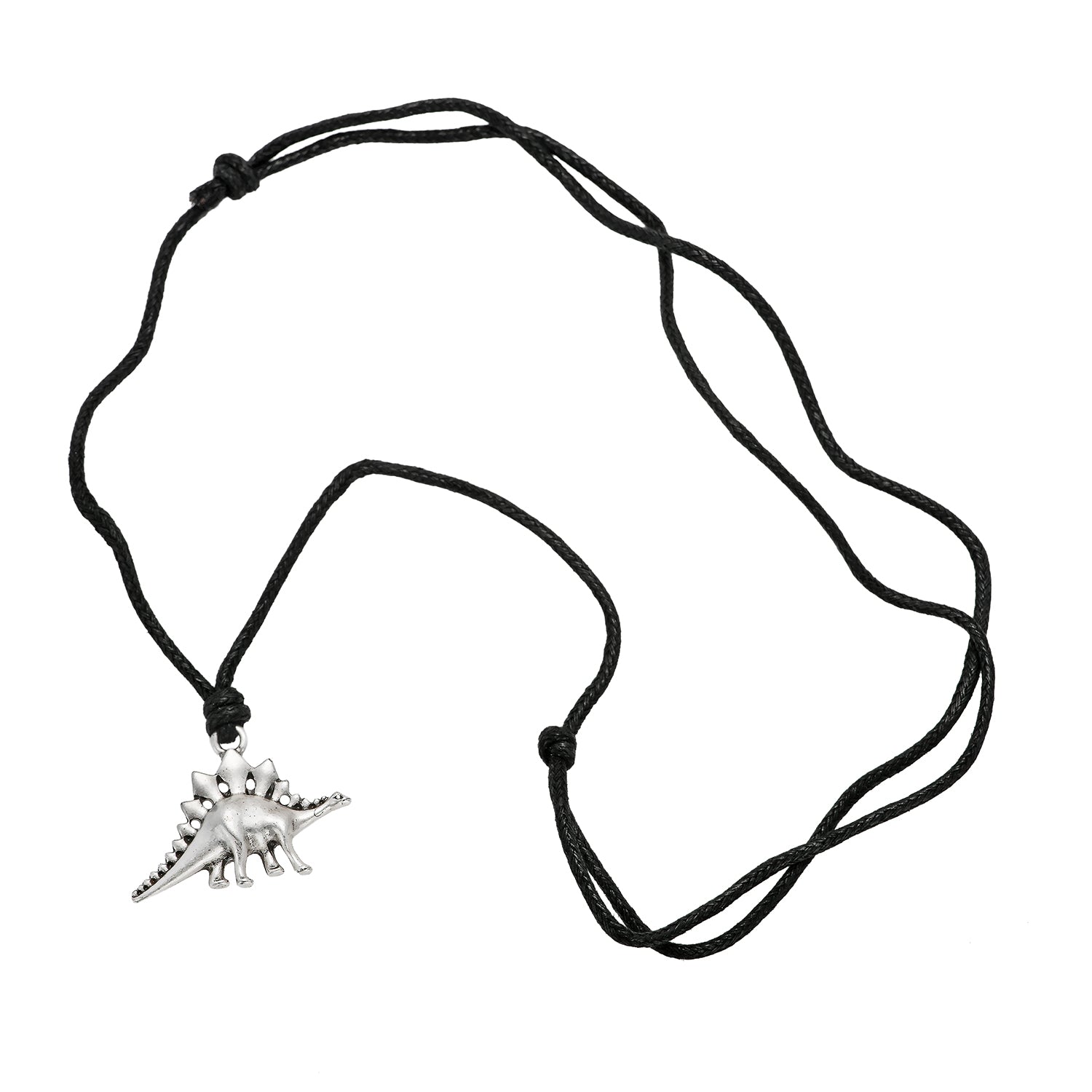 BLACK SLIDER CORD NECKLACE WITH DINOSAUR - CARDED